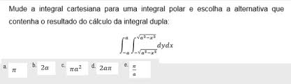 A integral dupla de nos limites apresentados, corrsponde à seguinte integral em coordenadas polares: