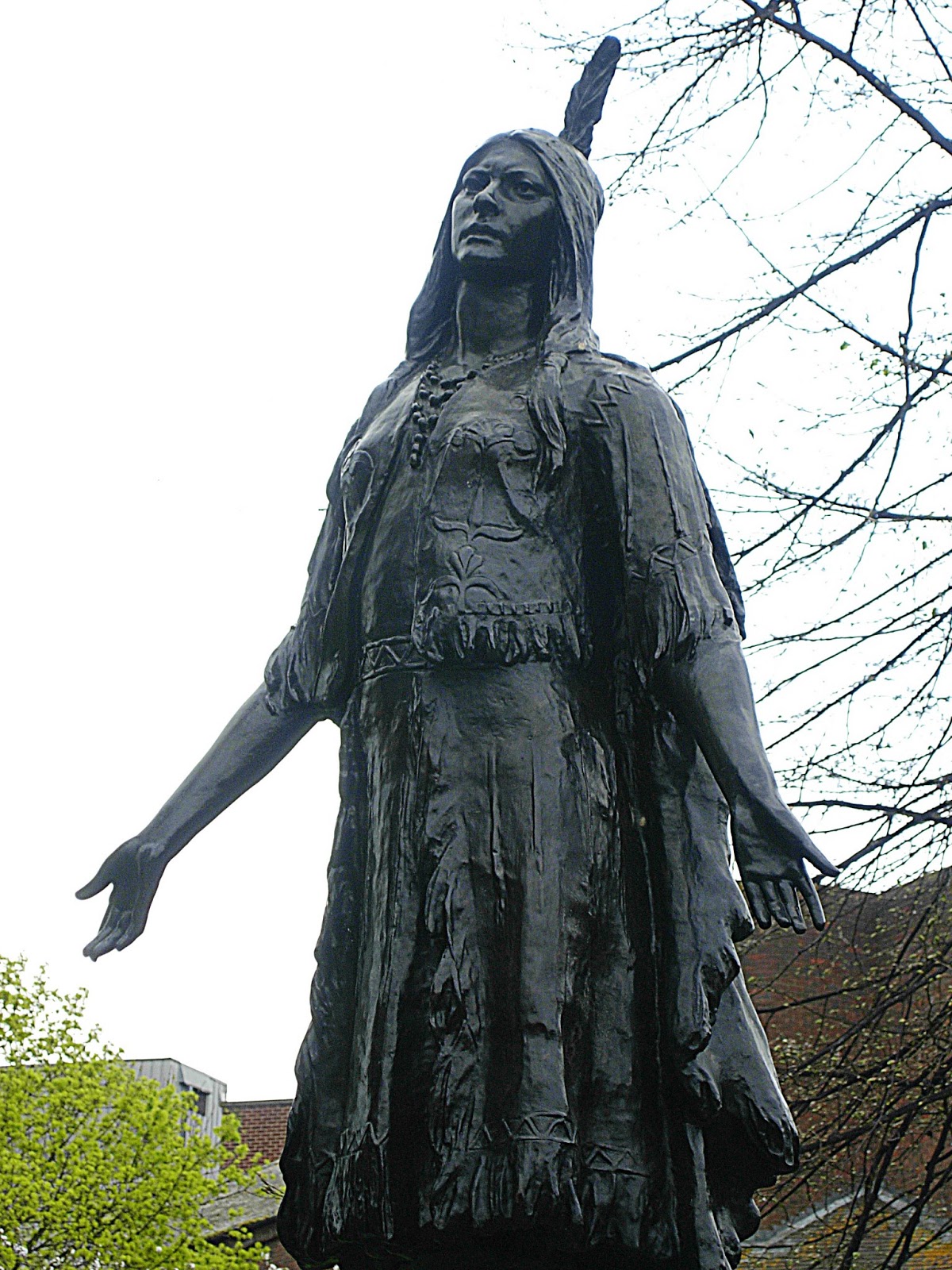 A estátua de Matoaka (Pocahontas) em Kent, Inglaterra, onde ela morreu.