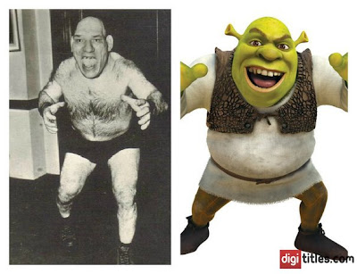 O Shrek é o único personagem dessa lista que nunca existiu (a menos que alguém já tenha visto um ogro andando por aí). Mas ainda assim, ele foi inspirado numa pessoa bem real, um lutador francês chamado Maurice Tillet.